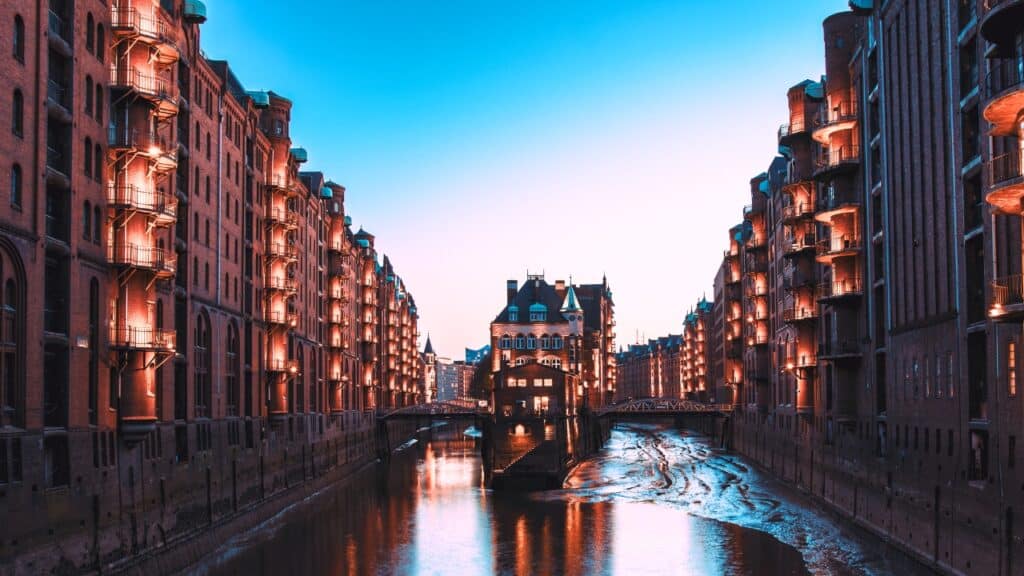 With a name that literally translates to “warehouse city,” Speicherstadt is the largest warehouse complex in the world and a UNESCO World Heritage Site. Featuring red-brick, neo-gothic architecture and winding streets, canals, and bridges, it’s perfect for scenic strolls and photography, especially at twilight.